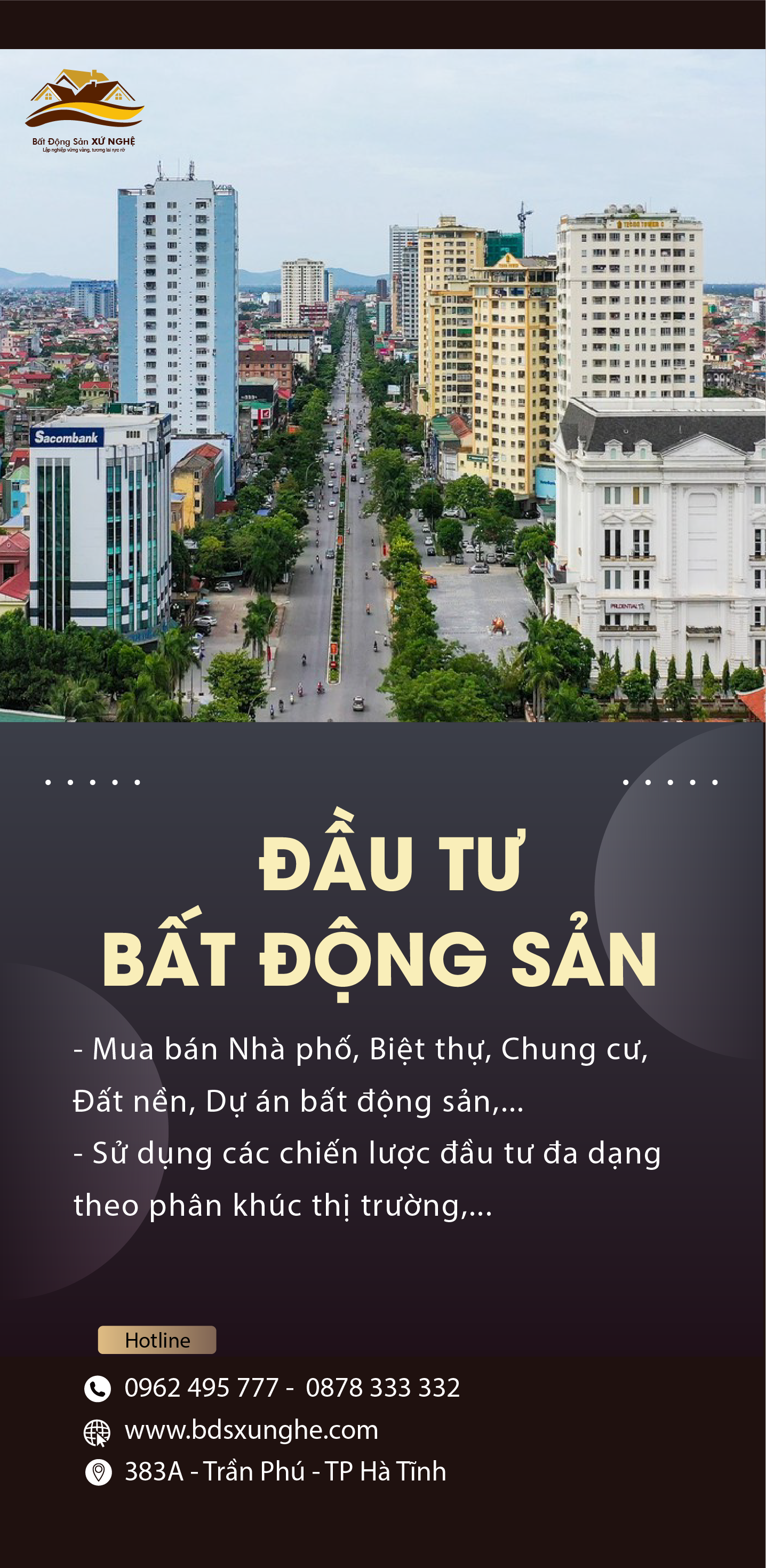 Bất động sản xứ nghệ, bdsxunghe, là trang website chuyên cung cấp thông tin về thị trường bất động sản Xứ Nghệ một cách đầy đủ, chính xác và cập nhật nhất. Tại đây, bạn có thể tìm kiếm